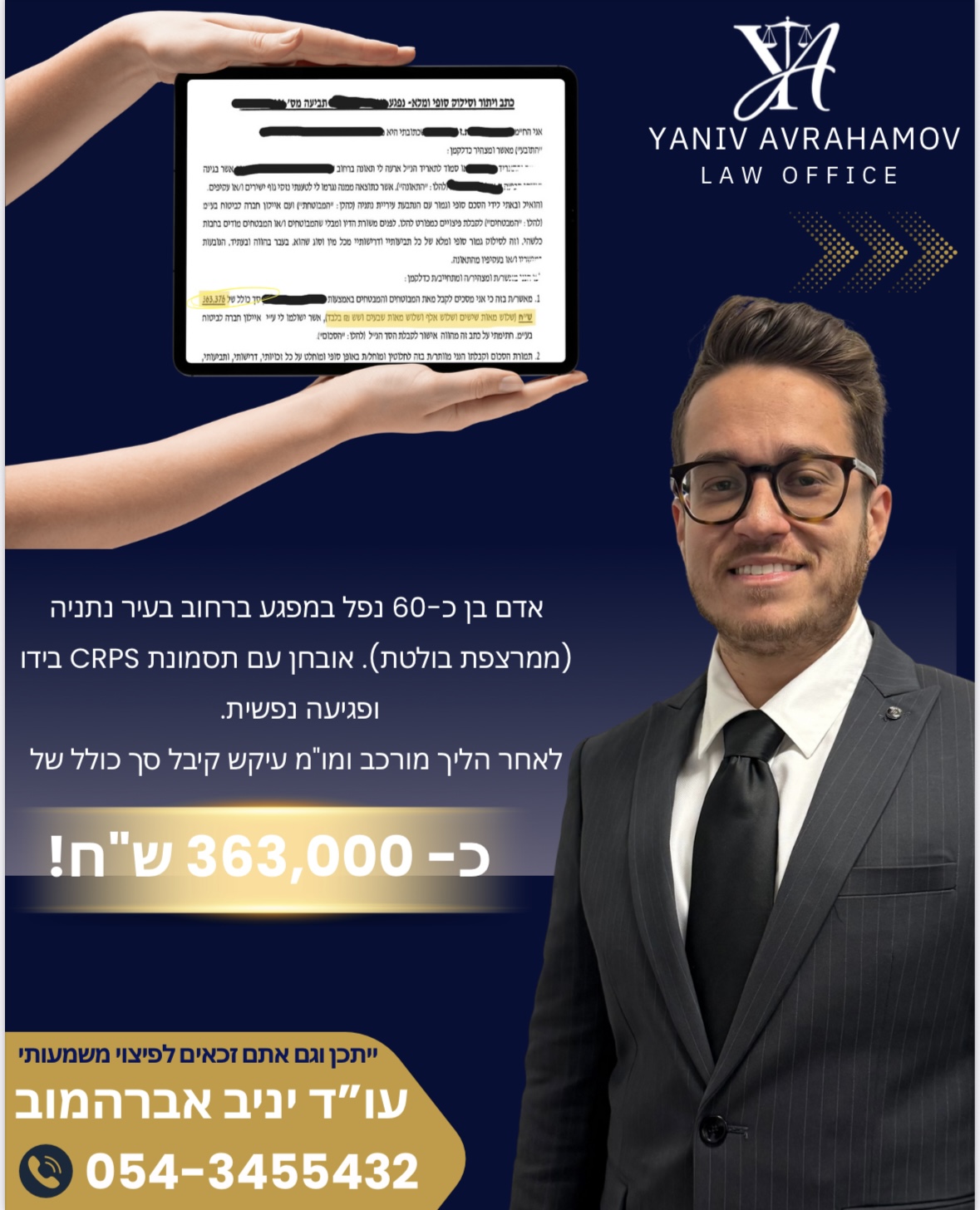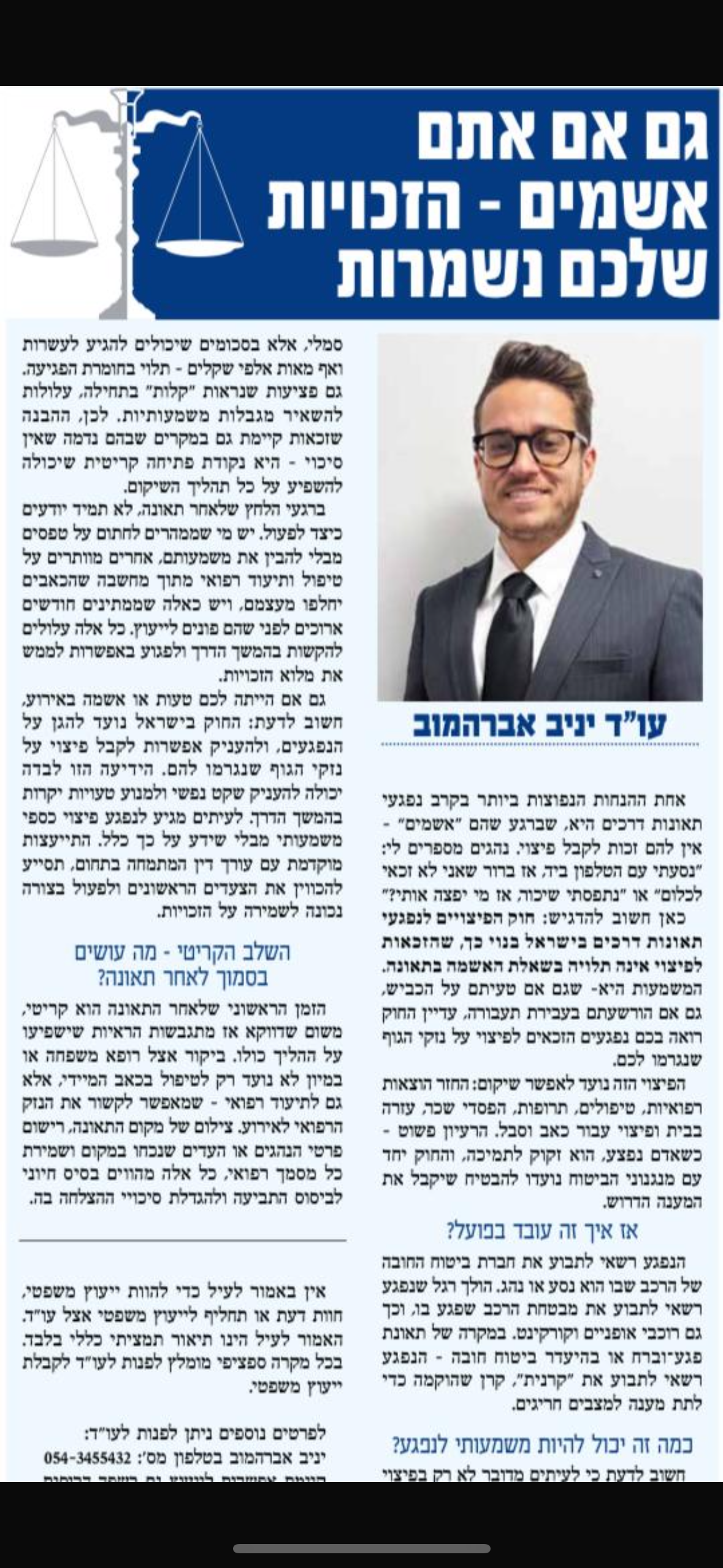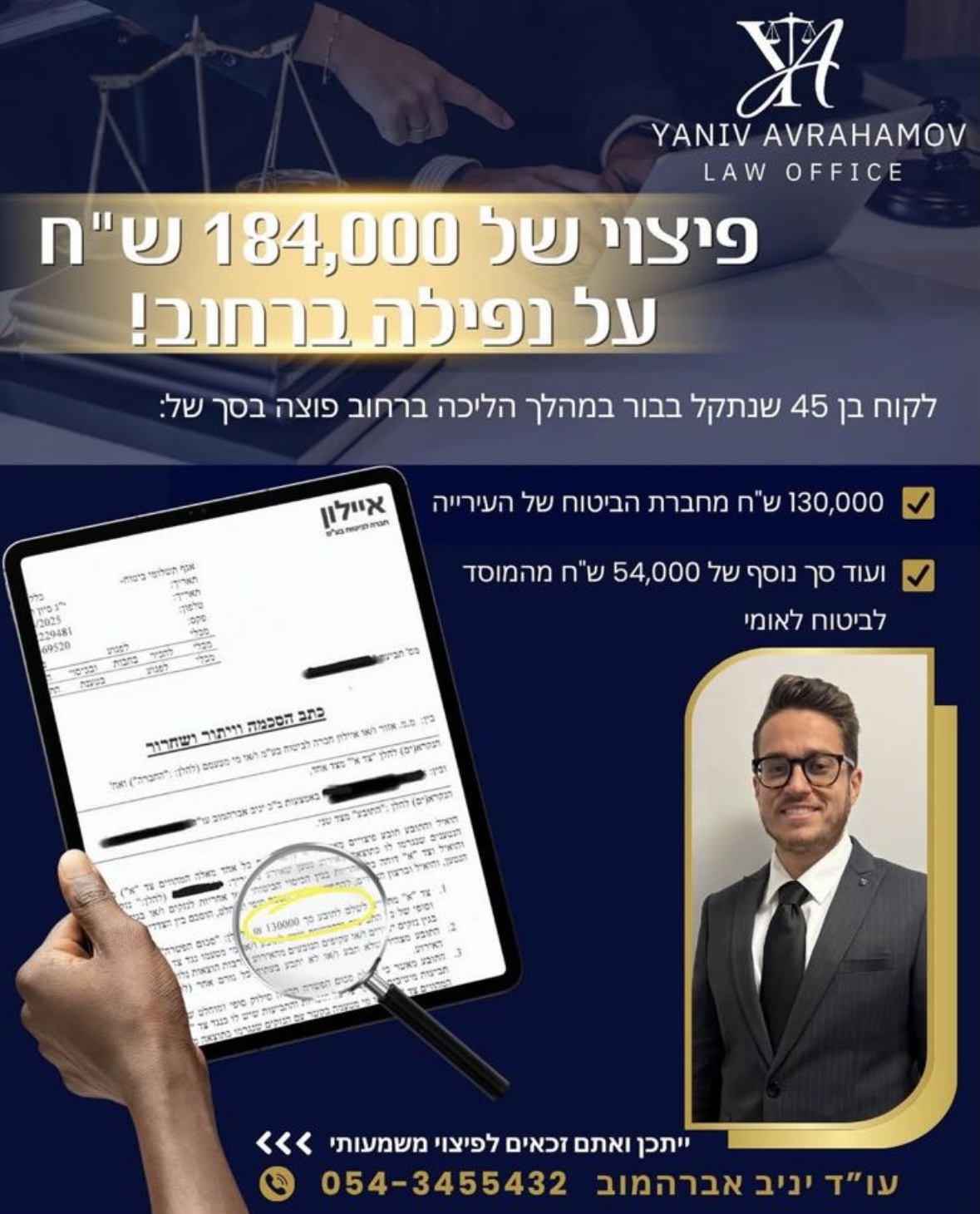 משרד עורכי דין יניב אברהמוב עוסק בתחום נזקי הגוף, לרבות תאונות דרכים, תאונות עבודה ותאונות שאירעו במרחב הציבורי.