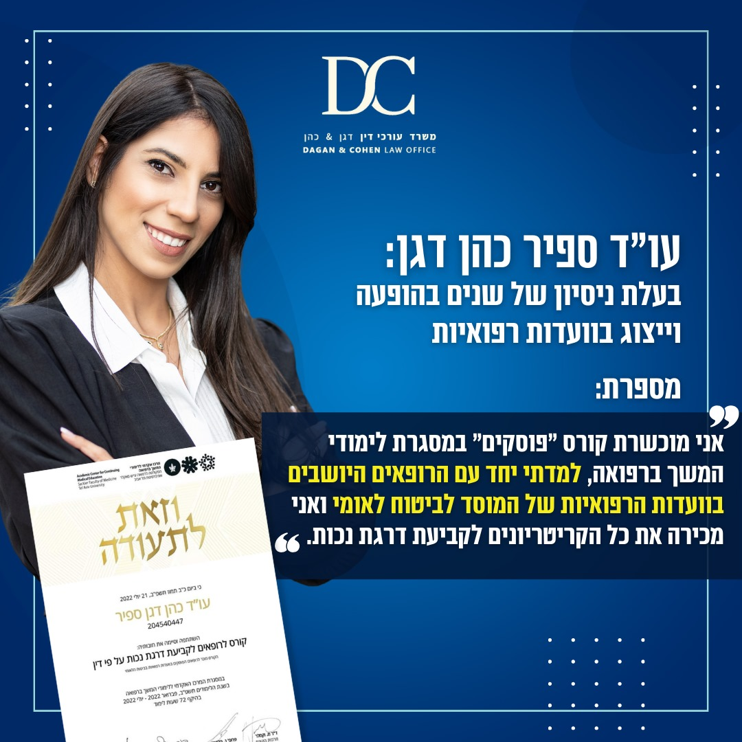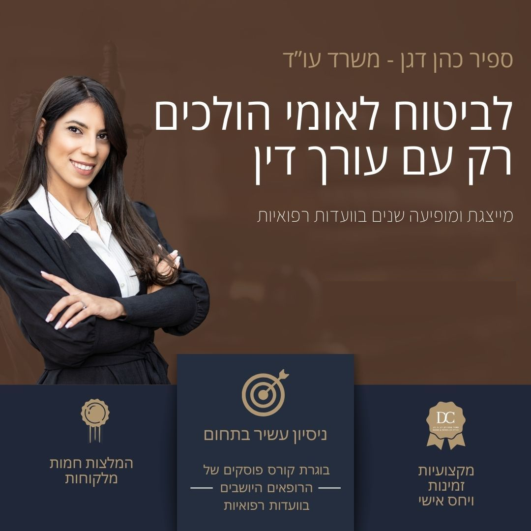משרד עו"ד דגן כהן, לדיני נזיקין ומימוש זכויות רפואיות מעניק ייצוג משפטי ומקצועי מול חברות הביטוח, המוסד לביטוח הלאומי וליווי וייצוג בוועדות רפואיות.